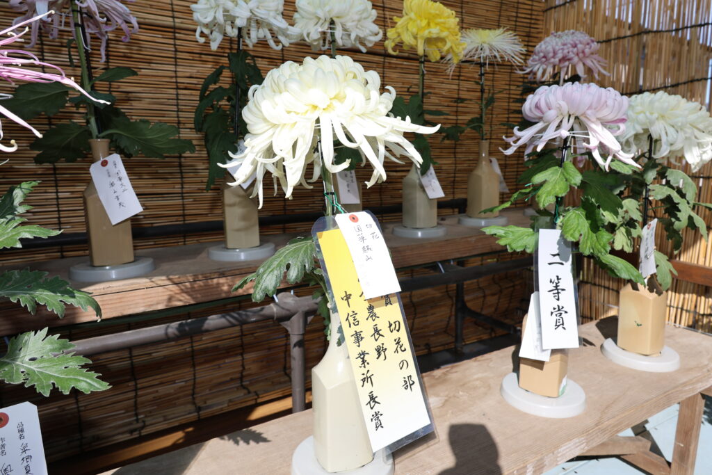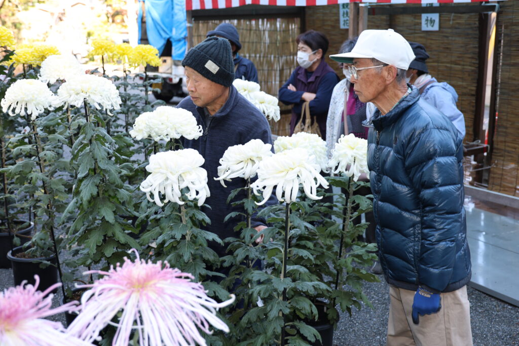 小林会長は「花は一瞬で人々の心を和ませる。諏訪大社や諏訪護国神社を訪れた際は、ぜひ足を留めて会員が丹精込めて育てた菊を見てほしい」と話しました。
