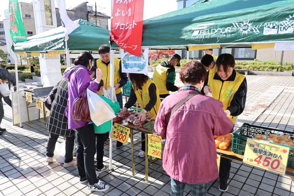 JA信州諏訪岡谷支所は11月1日、岡谷市農業振興連絡協議会が主催する「岡谷市収穫祭2025」に出店参加しました。役職員8人が参加し、農産物と食品を販売。JAの食育パネルも設置して活動をPRしました。