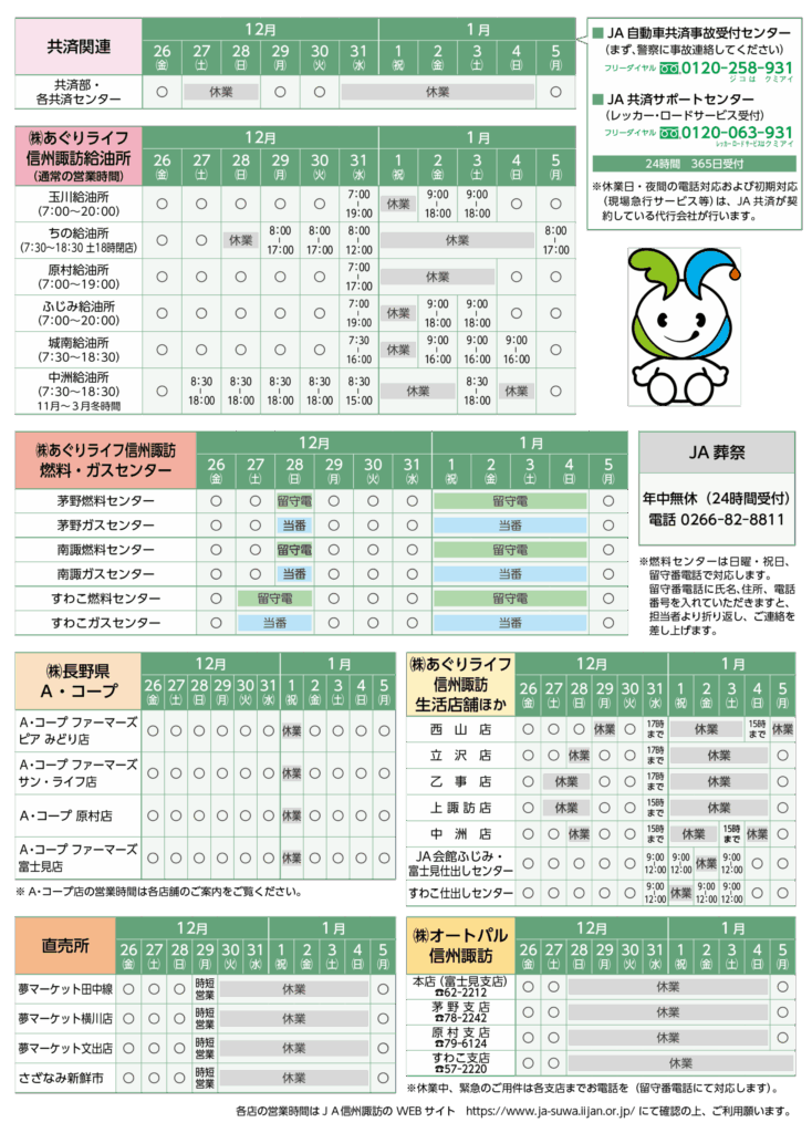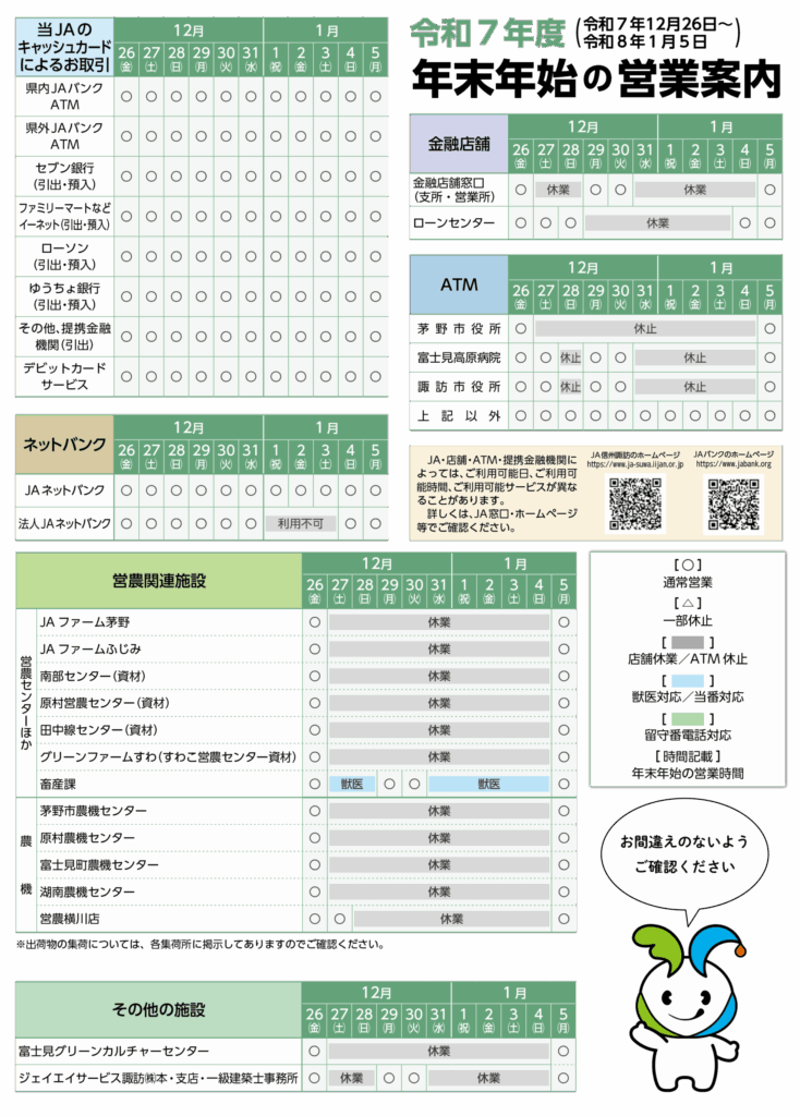 年末年始の休業期間について、以下のとおりお知らせいたします。