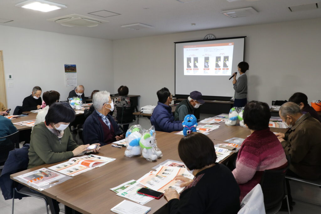 11月19日・20日に茅野市の茅野南部支所で開いた教室には、8人が参加。1日目の基本編では、スマホの操作方法、カメラ・マップ・インターネットの使い方を学びました。机の上に並んだJAオリジナルキャラクター「じゃすまる」の写真を実際に撮影したり、マップアプリでは“自分が今行きたい場所“を指定し、目的地までの行き方を調べました。また、JA職員の説明で、購買請求書や農産物の販売明細や市況が確認できるJA利用者専用ウェブサイト「組合員Myページ」と、通帳残高や入出金明細の確認ができる「JAバンクアプリ」のインストールと登録も行いました。