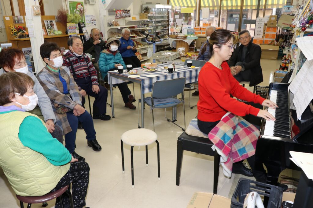 「ピアノミニコンサート」は、「買い物だけではなく、誰でも気軽に立ち寄って欲しい」との思いから、小松店長が企画。後藤さんは小松店長の次女で、同町で音楽教室を開いています。ピアノは、後藤さんが幼い頃練習に使っていた思い出深いものを持ち込みました。
