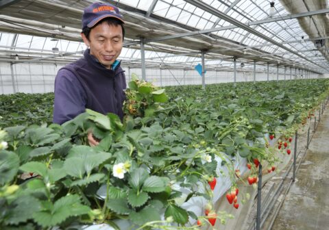 諏訪市の「諏訪湖いちご園」のイチゴが2月、最盛期を迎えています。中央自動車道「諏訪湖スマートIC」開通後、初めてのシーズン到来で、作柄は良好。主力の「章姫」ほか3品種が赤々と実り、多くの人の来園を待ちわびています。